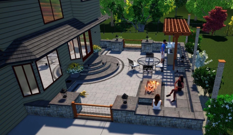 Explore three outdoor living designs created to show how this backyard could be transformed — from a simple grilling patio to a complete outdoor living experience.
